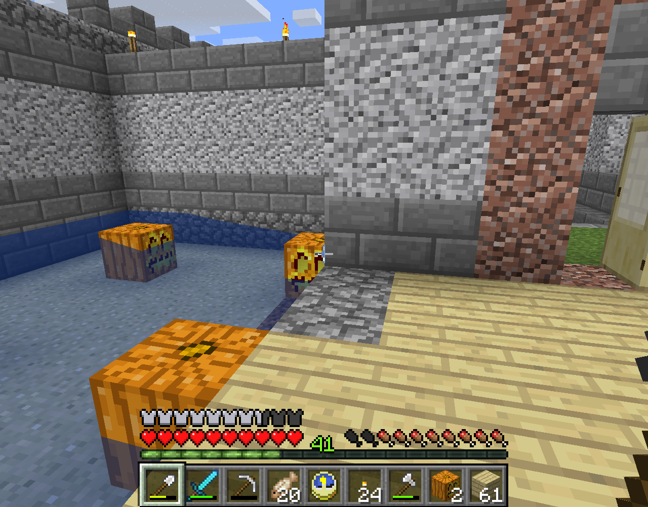 まだ開口部は作っていませんが,窓を設置したり城壁上に出れる扉などを付ける予定です.